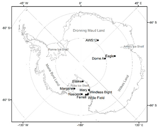 | AWS12 * | 35.633° E | 78.65° S | 1 March 2008–31 March 2011 | 3.1 | East Antarctica | 3620 |