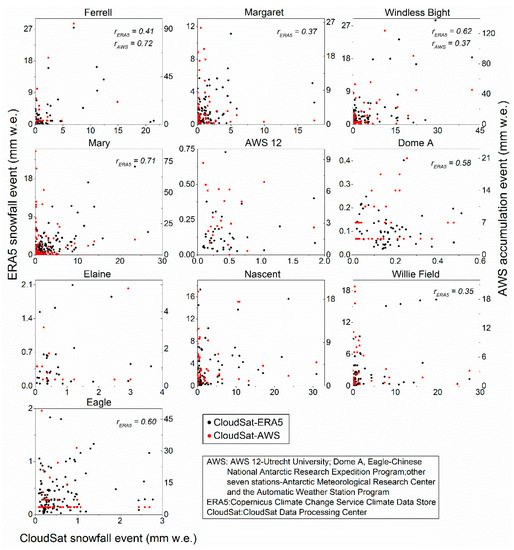 - Lemonnier, F.; Madeleine, J.-B.; Claud, C.; Genthon, C.; Durán-Alarcón, C.; Palerme, C.; Berne, A.; Souverijns, N.; Lipzig, N.; Gorodetskaya, I.V.; et al. Evaluation of CloudSat snowfall rate profiles by a comparison with in-situ micro rain radars observations in East Antarctica. Cryosphere 2019, 13, 943–954. [Google Scholar] [CrossRef]
