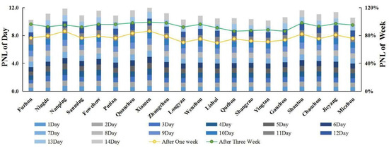 where, NTLpost-disaster is the total NTL radiation after a disaster, and NTLpre-disaster is the total NTL radiation before a disaster. As shown by Equation (12), a smaller PNL reflects a greater decrease in the total NTL intensity after the disaster.