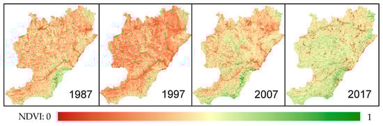 | 1987–1997 | DNDVI <−0.4 | 2.88 | Mixed forest →LC grassland (0.45) |