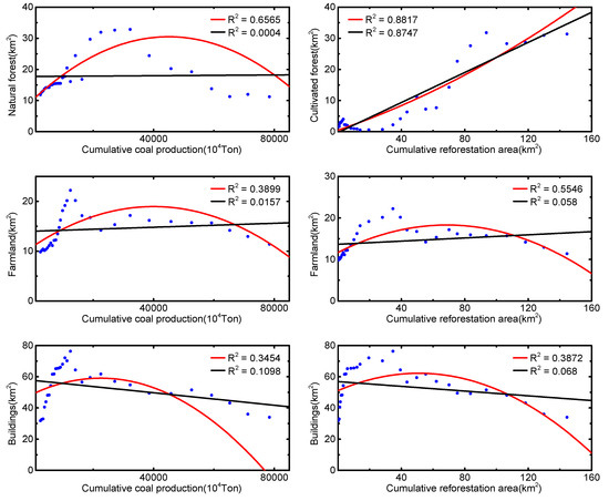 3.3. Relevance Between LULC Changes, Underground Mining, and Reforestation