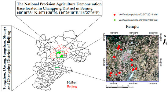 The National Experimental Station for Precision Agriculture is located in Xiaotangshan Town, Changping District, Beijing (40°10′33″ N–40°11′20″ N, 116°26′10″ E–116°27′06″ E). Trial 1, Trial 2, and Trial 3 were conducted in this station during 2013–2015.