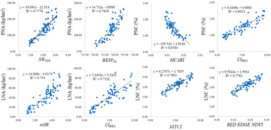 Relationship between nitrogen nutrition parameters and vegetation indices.