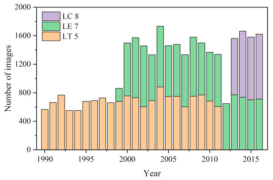 The total number of images from different sensors (Landsat 5/7/8) taken from 1990 to 2016 used in this study.