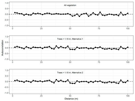 At each point, the closest tree in each of four height classes (<1 m, 1–2 m, 2–3 m, >3 m) within each of the four quadrants around the points defined according to the cardinal directions, i.e., the NE, SE, SW, and NW quadrants, was selected. Thus, a maximum of 16 trees were selected at each point. It should be noted that the selection of trees was restricted to a maximum distance from each sample point of 25 m [26].
