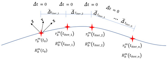 - : position of IMU body frame relative to the mapping reference frame at time derived from the GNSS/INS integration process