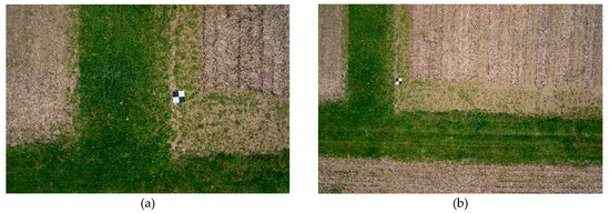 Sample images captured by the Sony RBG sensor over the calibration test field. (a) 20 m flying height and (b) 40 m flying height.
