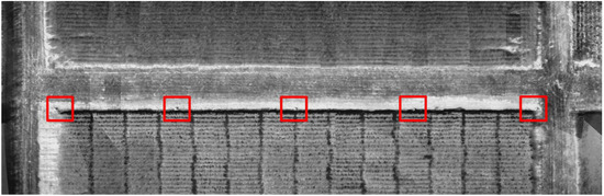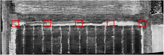 Orthophoto result from direct approach for Sony—May 06th data collection (red boxes show the location of the check points,).