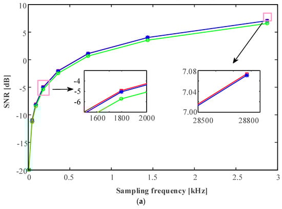 It can be seen from Equation (12) that is positively correlated with and negatively correlated with . Therefore, SNR can be improved by increasing the sampling frequency or by selecting a reasonably small to suppress Gaussian random noise.
