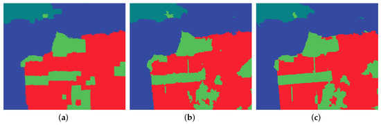 The visual classification results on San Francisco data set. (a) The classification map by QSLIC. (b) The classification map by QSEEDs. (c) The classification map by QPAN.