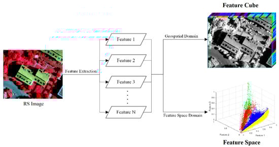 N-dimensional “feature cube” and feature space for a remote sensing (RS) image.