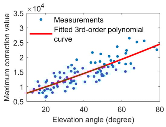 A third-order polynomial is used to fit the measurements with the expression as