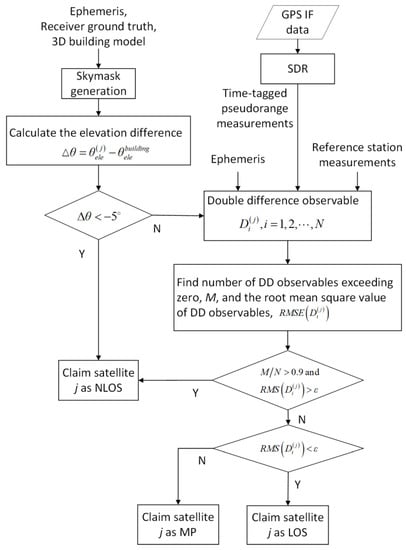 Step 8: If the RMS value is lower than , satellite j is claimed to be LOS; otherwise it is claimed to be MP.