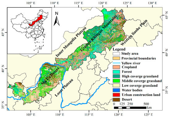 - Li, X.L.; Yang, L.X.; Tian, W.; Xu, X.F.; He, C.S. Land use and land cover change in agro-pastoral ecotone in Northern China: A review. Chin. J. Appl. Ecol. 2018, 29, 3487–3495. [Google Scholar]