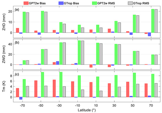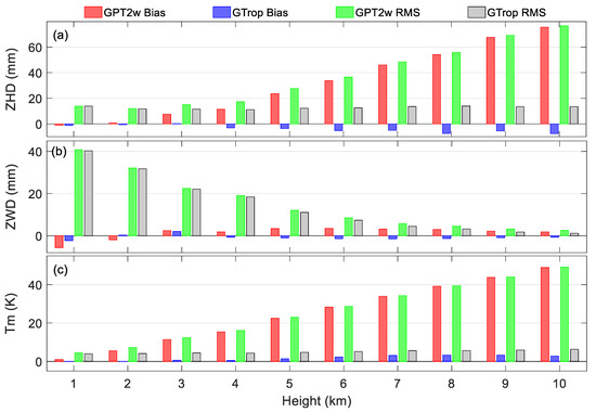 2.4. Height Corrections for Tropospheric Delay and Tm
