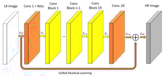 - Kim, J.; Lee, J.; Lee, K. Accurate Image Super-Resolution Using Very Deep Convolutional Networks. In Proceedings of the IEEE Conference on Computer Vision and Pattern Recognition, Las Vegas, NV, USA, 27–30 June 2016; pp. 142–149. [Google Scholar]