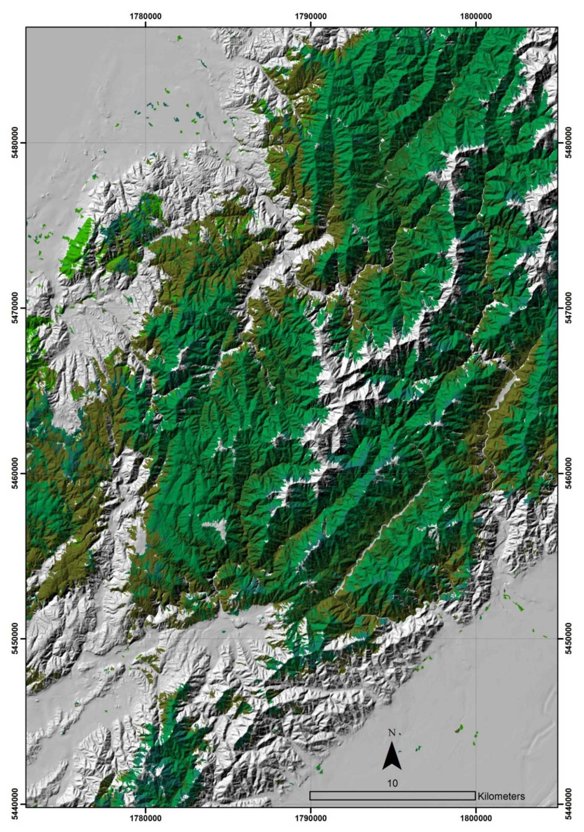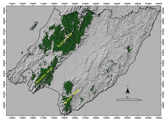 - Shepherd, J.D.; Ausseil, A.-G.; Dymond, J.R. EcoSat Forests: A 1,750,000 Scale Map of Indigenous Forest Classes in New Zealand; Manaaki Whenua Press: Lincoln, New Zealand, 2005; Available online: https://lris.scinfo.org.nz/ (accessed on 15 August 2019).
