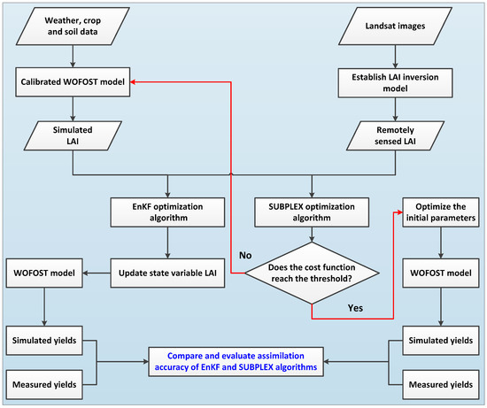 - Zhao, Y.; Chen, S.; Shen, S. Assimilating remote sensing information with crop model using Ensemble Kalman Filter for improving LAI monitoring and yield estimation. Ecol. Model. 2013, 270, 30–42. [Google Scholar] [CrossRef]