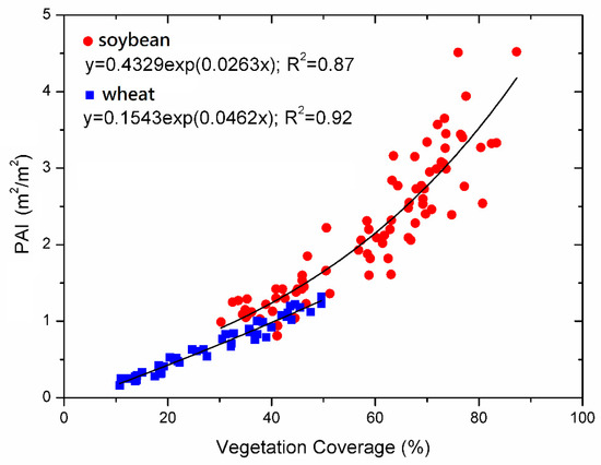 Figure 4 shows a strong relationship between LAI and vegetation coverage. The PAI could be expressed by the vegetation coverage.