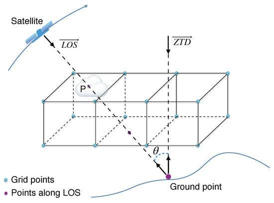 In order to avoid possible errors caused by the approximation in the Z-LOS method, the tropospheric delays actually can be estimated more accurately by integrating the refractivity along the LOS direction using Equation (2).