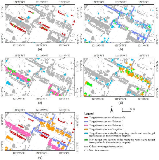 - Liu, L.; Coops, N.C.; Aven, N.W.; Pang, Y. Mapping urban tree species using integrated airborne hyperspectral and LiDAR remote sensing data. Remote Sens. Environ. 2017, 200, 170–182. [Google Scholar] [CrossRef]