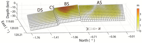 - Yang, Y.-H.; Hu, J.-C.; Tung, H.; Tsai, M.-C.; Chen, Q.; Xu, Q.; Zhang, Y.-J.; Zhao, J.-J.; Liu, G.-X.; Xiong, J.-N.; et al. Co-Seismic and Postseismic Fault Models of the 2018 Mw 6.4 Hualien Earthquake Occurred in the Junction of Collision and Subduction Boundaries Offshore Eastern Taiwan. Remote Sens. 2018, 10, 1372. [Google Scholar] [CrossRef]
