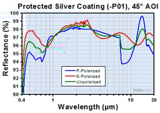 The main function of the reflector installed on the optical axis of the receiving Cassette telescope is employed to steer the spectrally tuned laser beam toward the target. In order to mitigate the loss of laser energy, this paper takes full consideration of the devices with high reflection efficiency in the range from visible band (VIS) to near infrared spectrum band (NIS) during the selection of reflector. As shown in Figure 5, the reflectivity of the selected reflector is over 94% in the spectrum range of 500 nm to 1000 nm.
