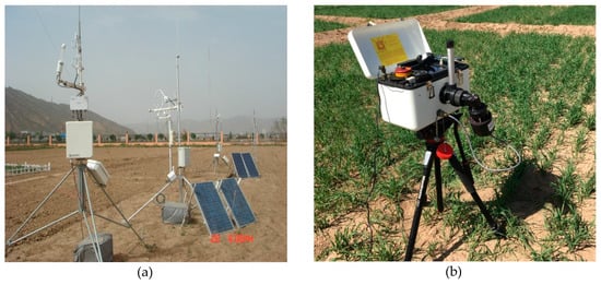 Dingxi station (35°34′N, 104°35′E) (or the Dingxi Drought Meteorological and Ecological Environment Test Base) is located at Dingxi City, Gansu Province. The Dingxi station is a comprehensive experimental base managed by the China Meteorological Administration. The altitude of this station is 1896.7 m, annual mean temperature is 6.7 °C, annual maximum monthly mean temperature appears in July, and annual mean precipitation is 386 mm. The observational site is flat and covered by wheat and potato plants, and the underlying surface is typical semi-arid farmland. The observed variables can represent basic climate and land surface characteristics in semi-arid regions of China. In-situ observations have been widely used in climate, hydrology, environment, and other scientific research in semi-arid areas of China [].