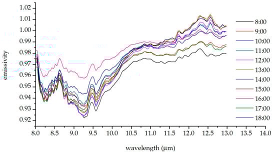 (3) The measured emissivity has obvious diurnal variation characteristics, but a small daily amplitude. The accuracy of the LST estimates retrieved by the B&L algorithm with measured emissivity also do not significantly improve.