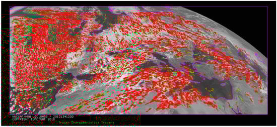Examples of AMVs related to different types of tracers for MSG satellite series, considering the tracer method and the tracer type, are shown in Figure 3 and Figure 4.
