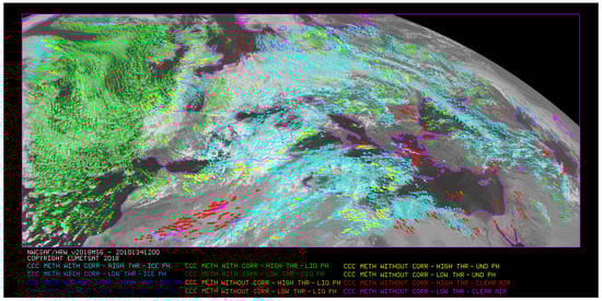 - Le Gléau, H. Algorithm Theoretical Basis Document for the Cloud Product Processors of the NWC/GEO (January 2019). Available online: http://www.nwcsaf.org/aemetRest/downloadAttachment/5362 (accessed on 24 August 2019).