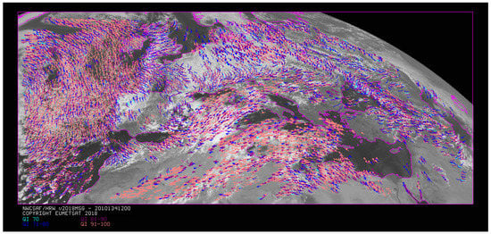 In Figure 5, an example of valid ‘basic AMVs’ related to the satellite channel they have been calculated with is shown.