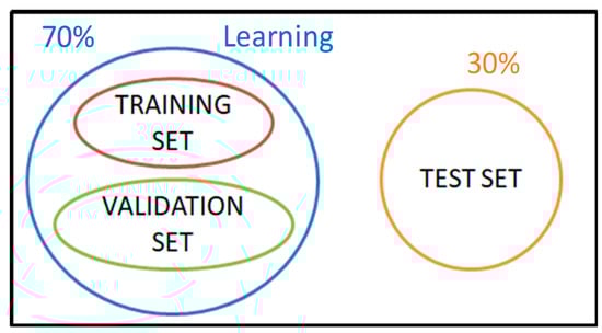 For each region and the whole dataset, the following procedure has been applied. The dataset has been divided into two independent datasets: The learning (70%) and test (30%) ones (Figure 3).