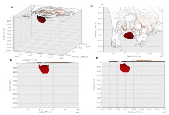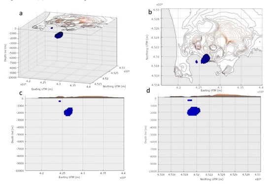 - Charco, M.; Galán del Sastre, P. Efficient inversion of 3D finite element models of volcano deformation. Geophys. J. Int. 2014, 196, 1441–1454. [Google Scholar] [CrossRef][Green Version]