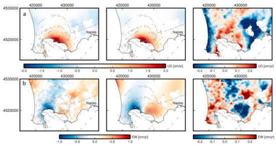 - Samsonov, S.V.; Tiampo, K.F.; Camacho, A.G.; Fernández, J.; González, P.J. Spatiotemporal analysis and interpretation of 1993–2013 ground deformation at Campi Flegrei, Italy, observed by advanced DInSAR. Geophys. Res. Lett. 2014, 41, 6101–6108. [Google Scholar] [CrossRef]
