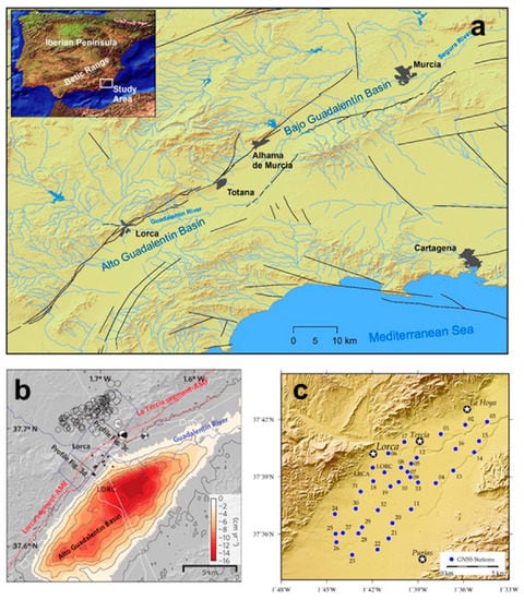 - González, P.J.; Tiampo, K.F.; Palano, M.; Cannavó, F.; Fernández, J. The 2011 Lorca earthquake slip distribution controlled by groundwater crustal unloading. Nat. Geosci. 2012, 5, 821–825. [Google Scholar] [CrossRef]