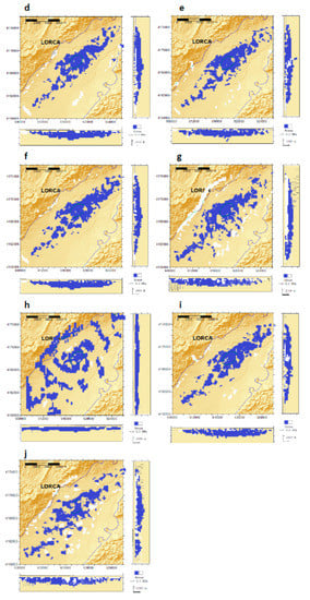 - Tomás, R.; Herrera, G.; Lopez-Sanchez, J.; Vicente-Guijalba, F.; Cuenca, A.; Mallorqui, J.J. Study of the land subsidence in Orihuela City (SE Spain) using PSI data: Distribution, evolution and correlation with conditioning and triggering factors. Eng. Geol. 2010, 115, 105–121. [Google Scholar] [CrossRef]