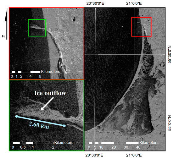 In the south-eastern Baltic (SEB), where the Curonian Lagoon (CL) is located, spaceborne SAR observations have been already used before to study the coastal upwelling and its environmental implications [24,25], monitoring of cyanobacteria blooms [26], and short-term mapping of ice conditions for planning potential zebra mussel farms [27]. However, the comprehensive use of spaceborne SAR data for detailed analysis of ice conditions in the Curonian Lagoon and the SEB is still lacking. The attention of local researches was primarily focused on studying the ice phenology in rivers and lakes [28,29], and observations and prediction of ice jams in the larger rivers [30,31]. Existing studies of ice conditions in the SEB and in the CL are not comprehensive, because they still rely on conventional in situ records based, for the most part, on the spatially-limited visual observations made at several coastal stations [32,33,34]. Some other studies [20,35] have considered the recent changes in the CL hydrology and water renewal with only modest links to its ice regime. Lastly, the authors of [34] used different statistical models in the attempt to predict the ice cover formation in the CL based on observational data. They concluded that the available in situ measurements are sparse and irregular, and do not describe the ice conditions over the entire lagoon, pointing out that an additional spatially-detailed information about the ice regime is critical to solve this task.