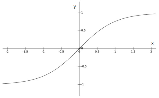 where tanh is a mathematical function resulting an output value bounded between -1 and 1 (illustrated in Figure 4), is the half window size for the window where the correlation coefficient is computed, is the correlation coefficient between and centered at location with half window size , is the threshold that the correlation coefficient is expected between and , is the gain that controls the steepness of the function (larger means a steeper ), and is the pixel value of at location . In Equation (6), if the neurons in a certain window fail to satisfy the threshold condition of correlation coefficient (the first part of the equation, i.e., ), then the center neuron is modified to enhance the correlation coefficient (the second part of the equation, i.e., ).