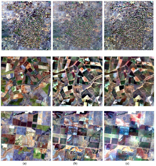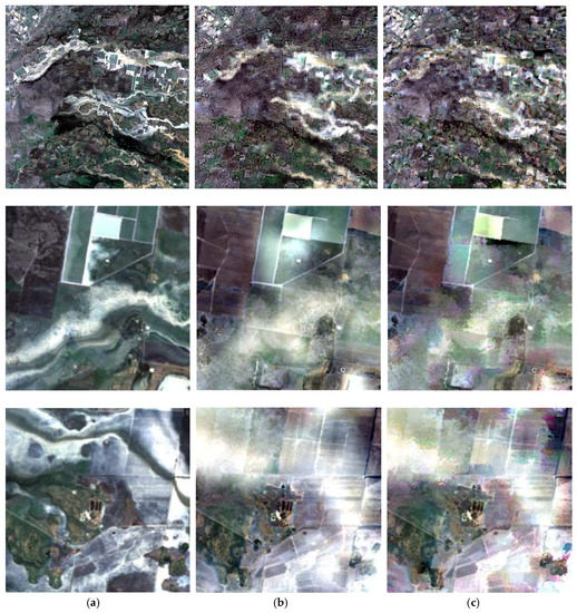 - Song, H.; Liu, Q.; Wang, G.; Hang, R.; Huang, B. Spatiotemporal Satellite Image Fusion Using Deep Convolutional Neural Networks. IEEE J. Sel. Top. Appl. Earth Observ. Remote Sens. 2018, 11, 821–829. [Google Scholar] [CrossRef]
