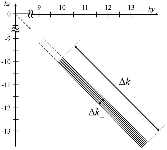 The wavevectors pointed out by the dashed line in Figure 4 obey to the relationship expressed by Equation (11).