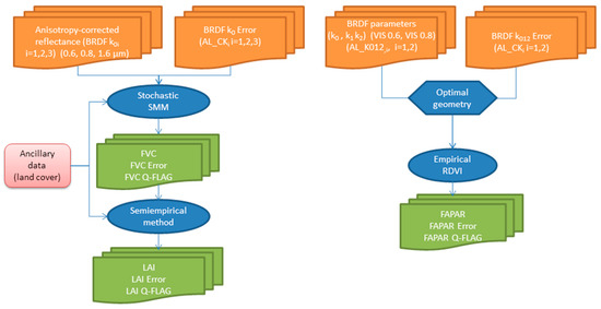 Flow chart of the algorithm for FVC, LAI and FAPAR determination.