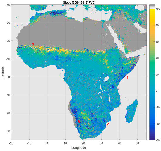 - Filipponi, F.; Valentini, E.; Nguyen Xuan, A.; Guerra, C.A.; Wolf, F.; Andrzejak, M.; Taramelli, A. Global MODIS Fraction of Green Vegetation Cover for Monitoring Abrupt and Gradual Vegetation Changes. Remote Sens. 2018, 10, 653. [Google Scholar] [CrossRef]