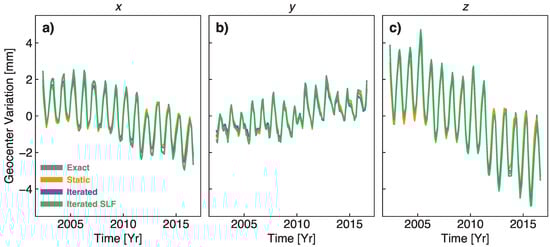 - Dong, D.; Dickey, J.O.; Chao, Y.; Cheng, M.K. Geocenter variations caused by atmosphere, ocean and surface ground water. Geophys. Res. Lett. 1997, 24, 1867–1870. [Google Scholar] [CrossRef]