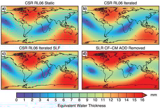 - Chen, J.L.; Rodell, M.; Wilson, C.R.; Famiglietti, J.S. Low degree spherical harmonic influences on Gravity Recovery and Climate Experiment (GRACE) water storage estimates. Geophys. Res. Lett. 2005, 32, L14405. [Google Scholar] [CrossRef]