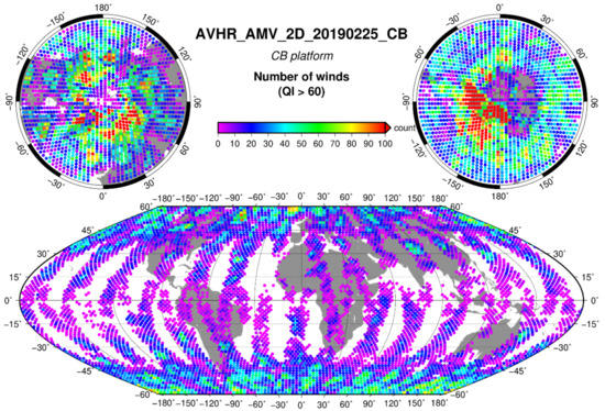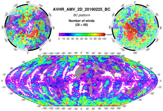 - Borde, R.; Hautecoeur, O.; Carranza, M. EUMETSAT Global AVHRR winds product’. J. Atmos. Oceanic Technol. 2016, 33, 429–438. [Google Scholar] [CrossRef]