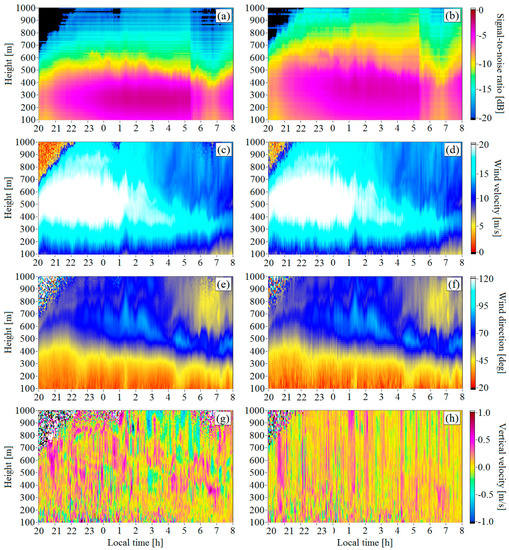 Figure 3e–f. Thus, due to the anisotropy of turbulence, the variance of the radial velocity at the elevation angle of 35.3° is 1.4 times larger than that at 60°, whereas the integral scale of turbulence at the elevation angle of 35.3° exceeds the integral scale at the elevation angle of 60° by 1.7 times.