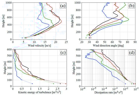 Figure 4b). It is possible that mesoscale processes occur here, like internal atmospheric waves arising under stable temperature stratification conditions and a strong change in the wind velocity with height.
