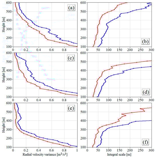 Figure 6a,c,e). The integral scales