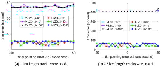 The experimental results of this section show that the I-LZD method has better calibration stability and shorter calibration time than the P-LZD method. At the same time, our method can also effectively calibrate the pointing angle when the range error exists. Meanwhile, simulation results using 1 km and 2.5 km lengths of track show that the I-LZD method is significantly affected by track length.